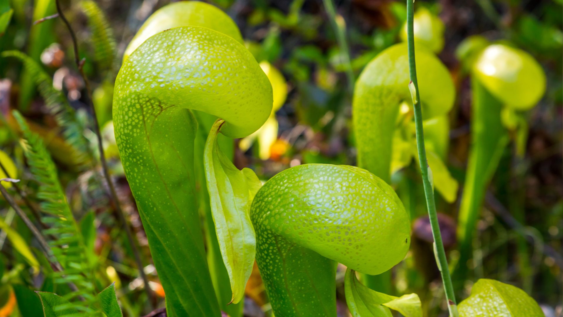 Sarracenia flava, originaria delle zone umide del Nord America sudorientale, la Sarracenia flava presenta delle foglie gialli a forma di imbuto.