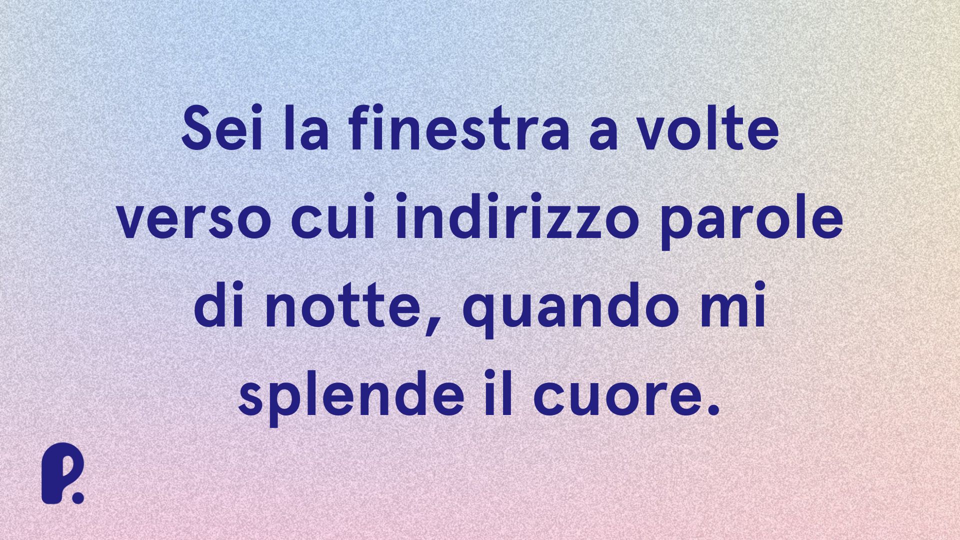 - Sei la finestra a volte verso cui indirizzo parole di notte, quando mi splende il cuore.