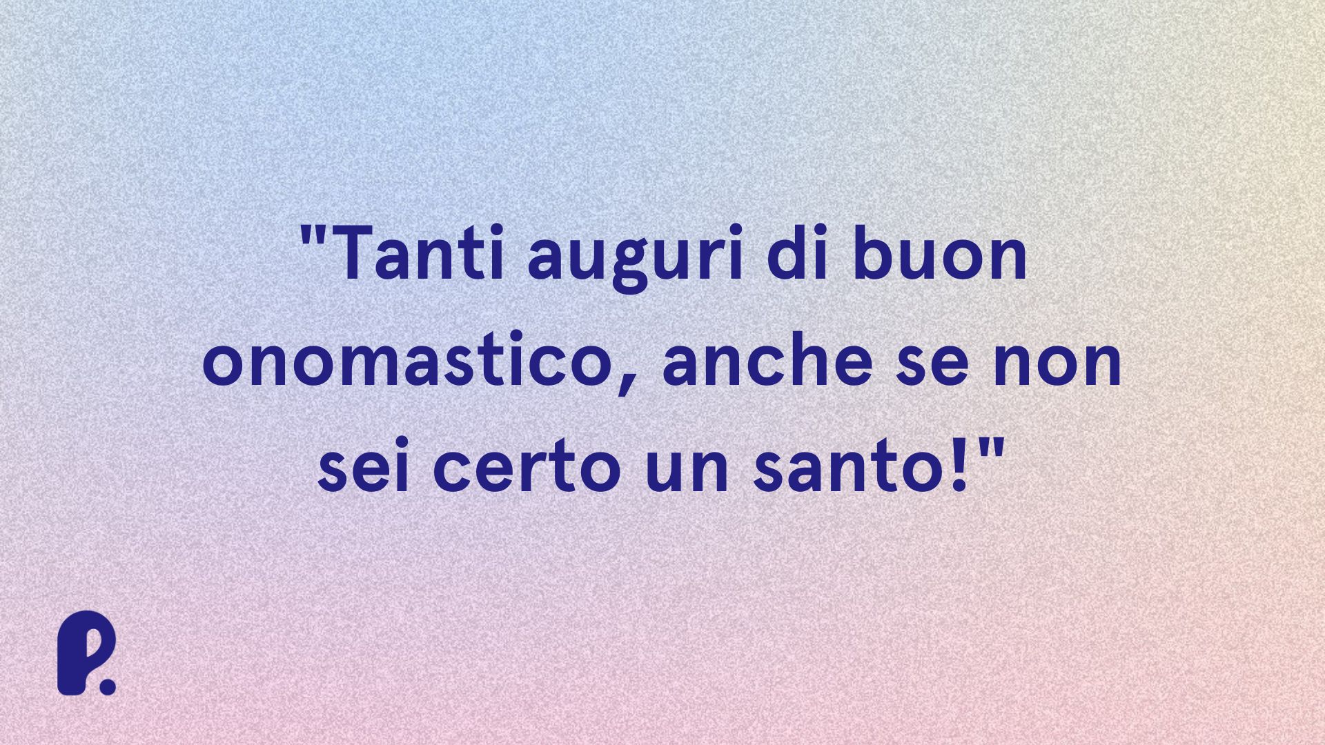 - "Oggi è un giorno speciale, dedicato al tuo santo. Ti auguro che ti conceda la saggezza per vivere una vita piena di fede e amore, e che la sua protezione ti accompagni sempre. Buon Onomastico!