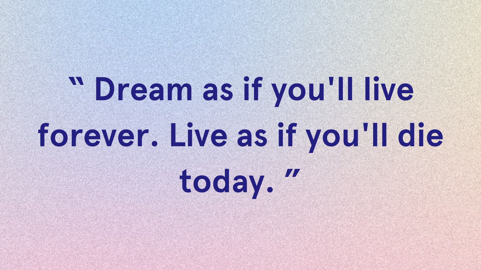 "Sogna come se dovessi vivere per sempre. Vivi come se dovessi morire oggi." James Dean