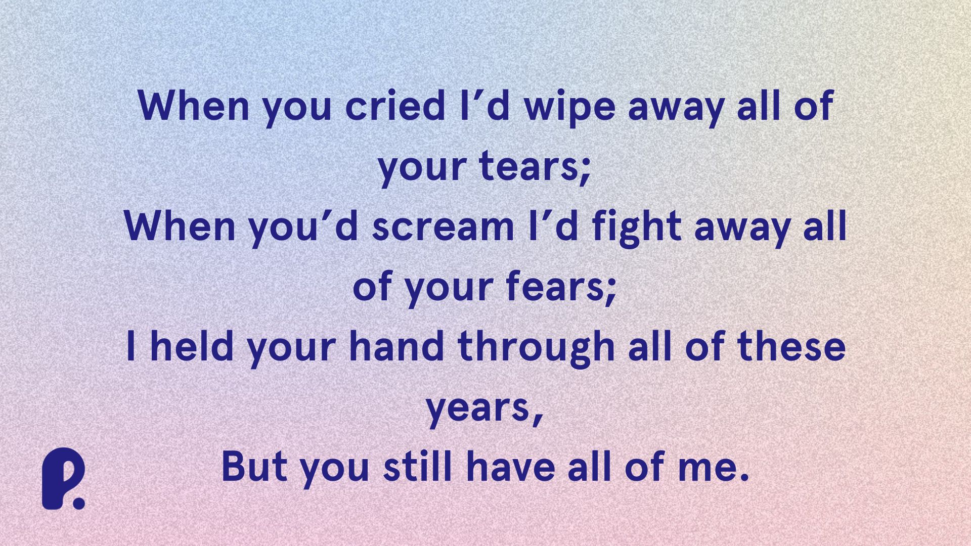 You know I’d never ask you to change, if perfect’s what you’re searching for then just stay the same.