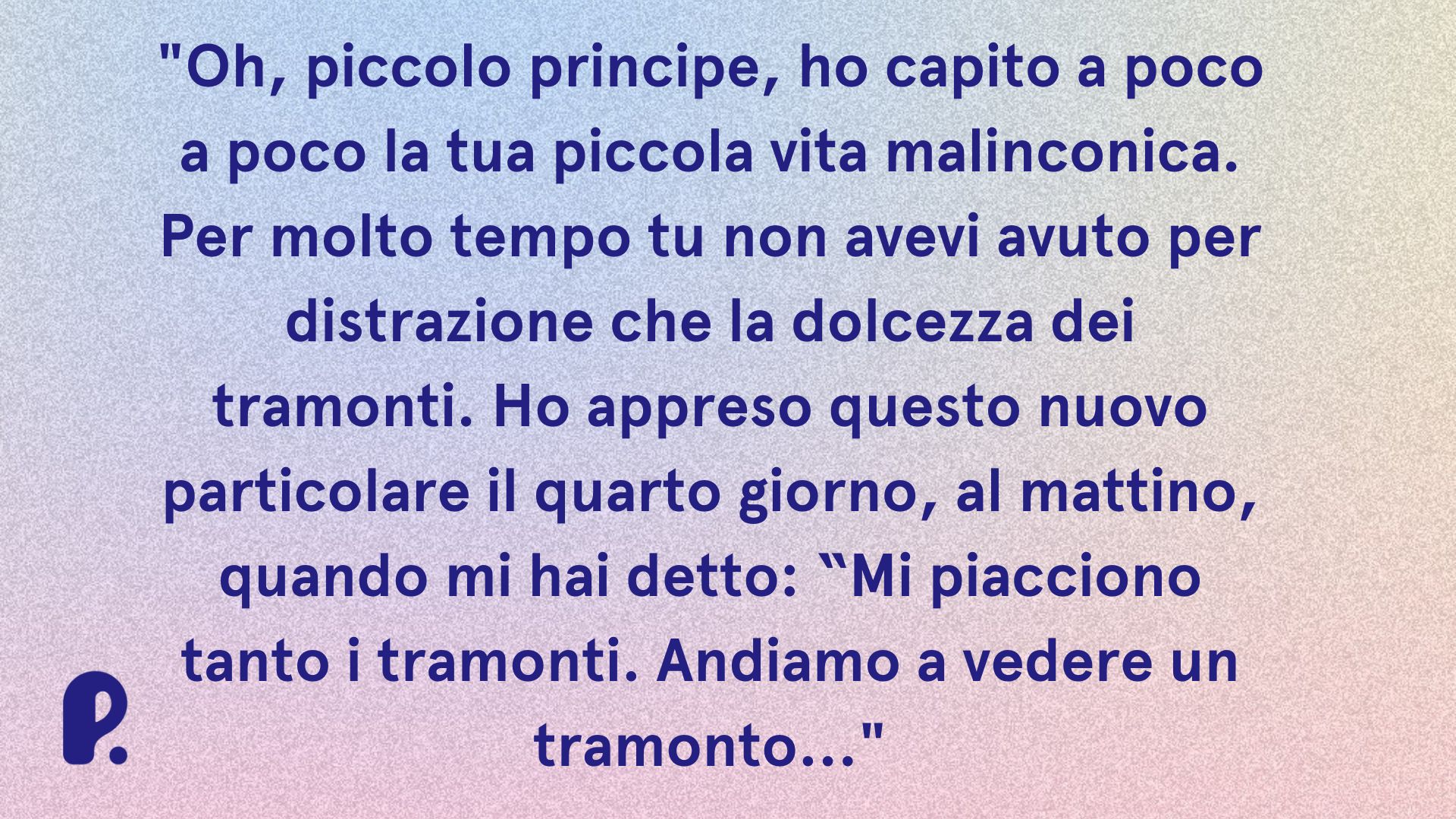 - "Se tu vieni, per esempio, tutti i pomeriggi, alle quattro, dalle tre io comincerò ad essere felice. Col passare dell'ora aumenterà la mia felicità. Quando saranno le quattro, incomincerò ad agitarmi e ad inquietarmi; scoprirò il prezzo della felicità! Ma se tu vieni non si sa quando, io non saprò mai a che ora prepararmi il cuore… Ci vogliono i riti".