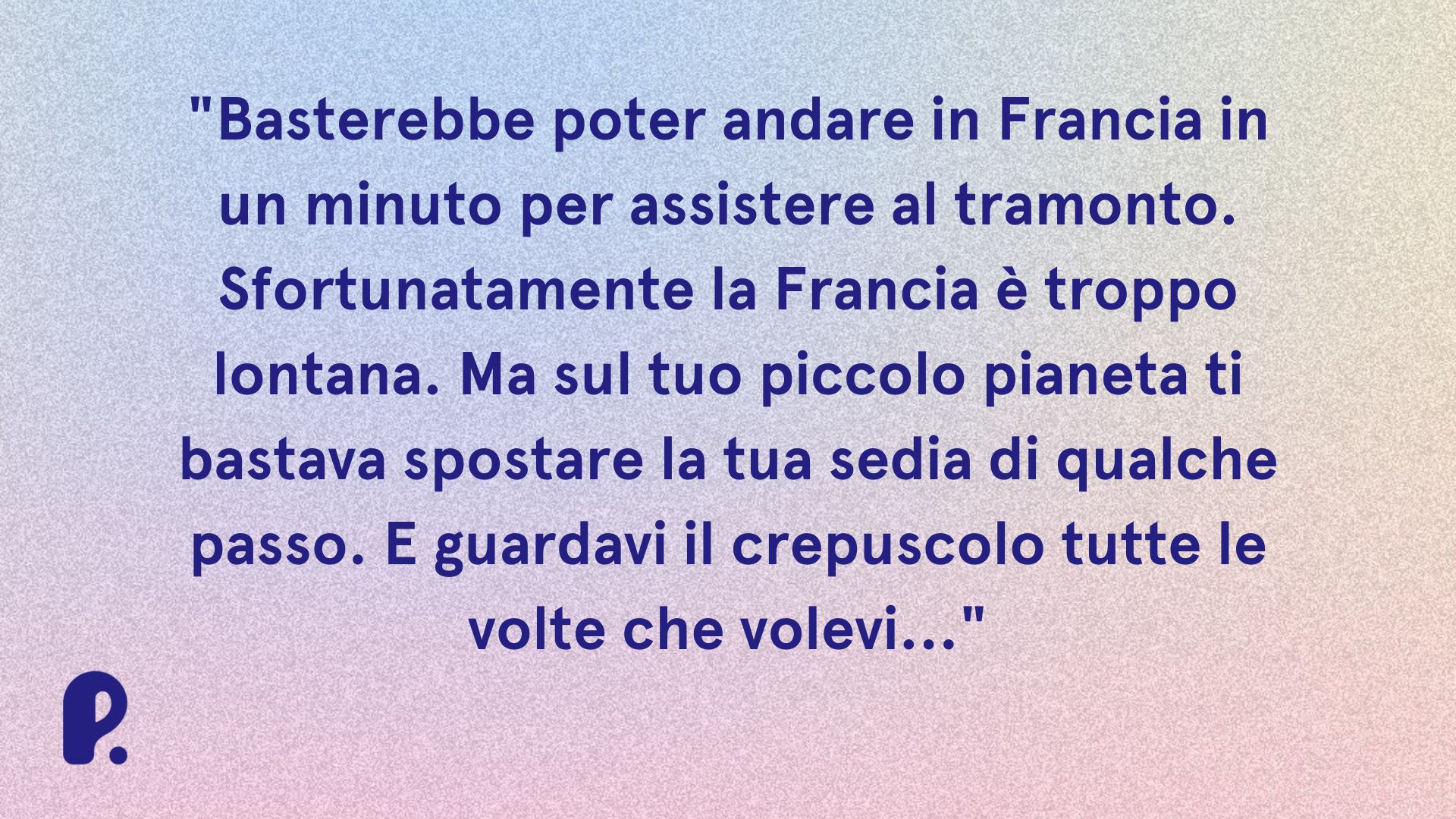 Ecco alcune delle più belle frasi del Piccolo Principe, quelle che fanno riflettere sulle piccole cose che possono rendere la vita migliore. Sono le frasi che possiamo anche utilizzare con persone che ci stanno a cuore.