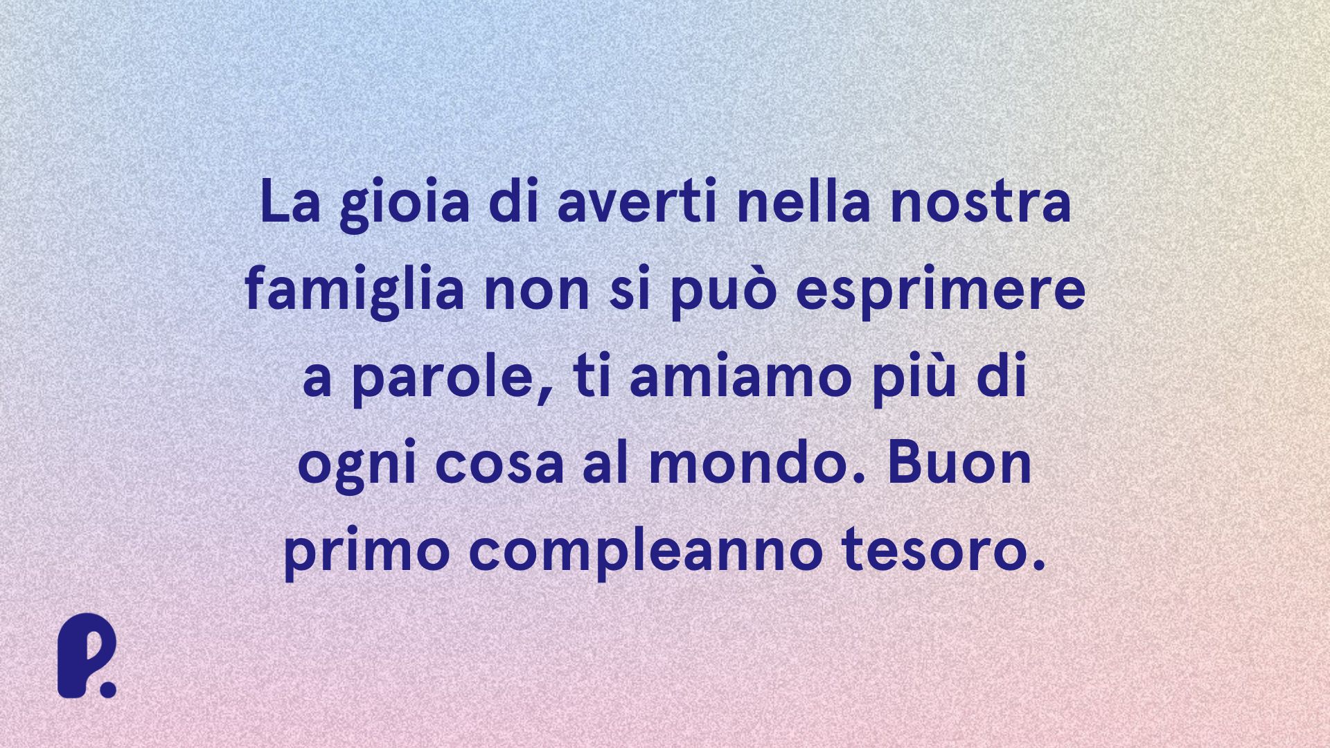 - Sei la luce che illumina il cammino di mamma e papà, e ti auguro di poter crescere sempre felice e sereno: buon primo compleanno!