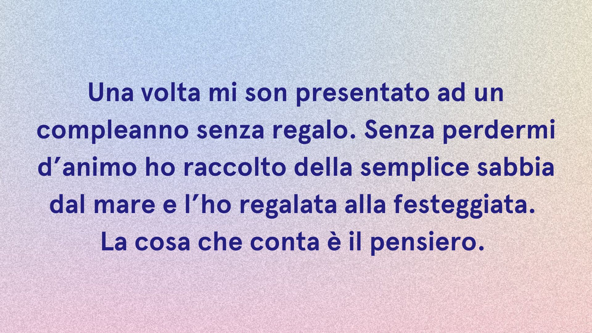 - È difficile fare degli auguri di compleanno unici, spero ti basti sapere che il mio pensiero per te è unico per davvero.