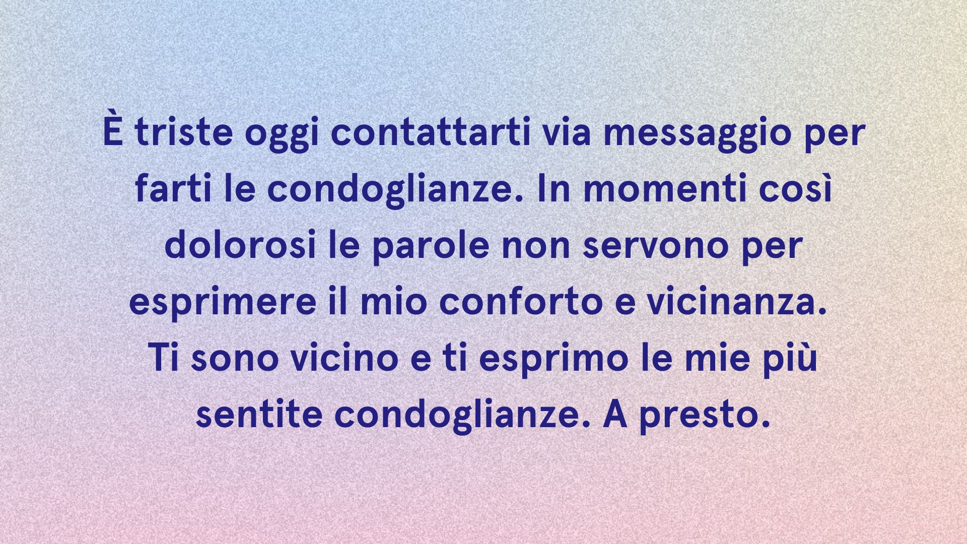 Anche un semplice messaggio di condoglianze, però, può aiutare a sentirsi meno tristi e sarà sempre gradito a chi lo riceverà.
