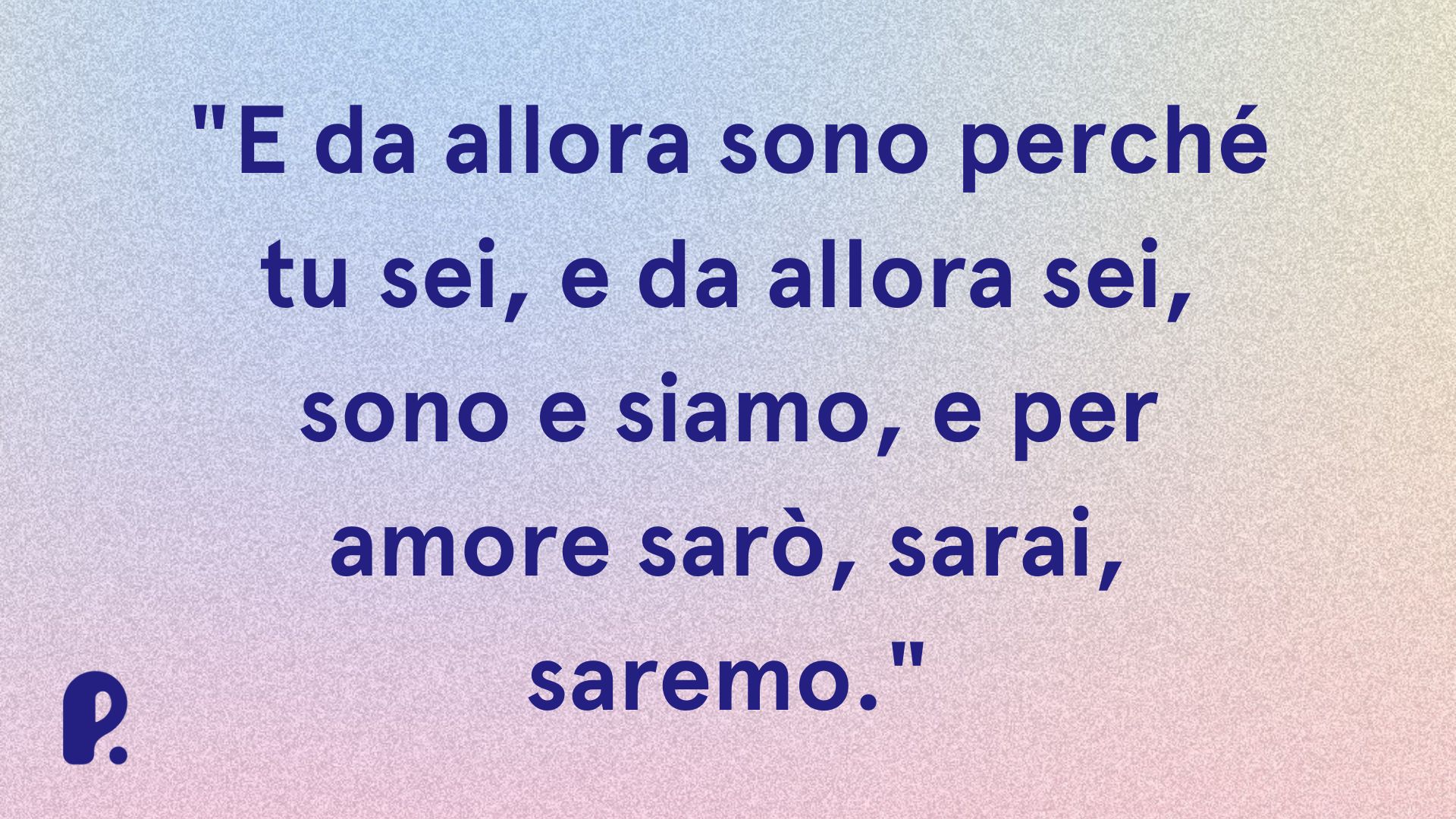 - "E da allora sono perché tu sei, e da allora sei, sono e siamo, e per amore sarò, sarai, saremo."