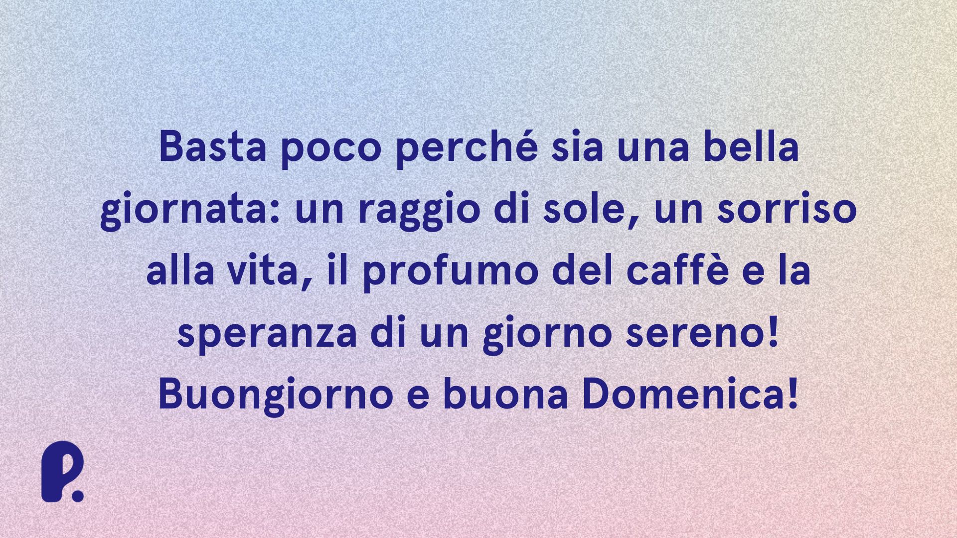 - Buona domenica! Possa questa giornata portarti mille motivi per sorridere durante tutta la settimana a venire.