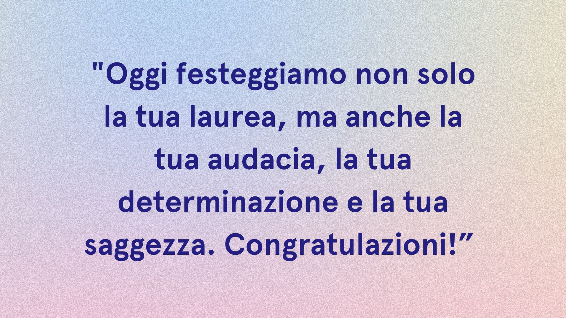 - Auguri per la tua laurea. Oggi, oltre ad essere un giorno di festa è soprattutto un giorno di speranza per l’intera umanità, se ce l’hai fatta tu, ce la possono fare tutti!