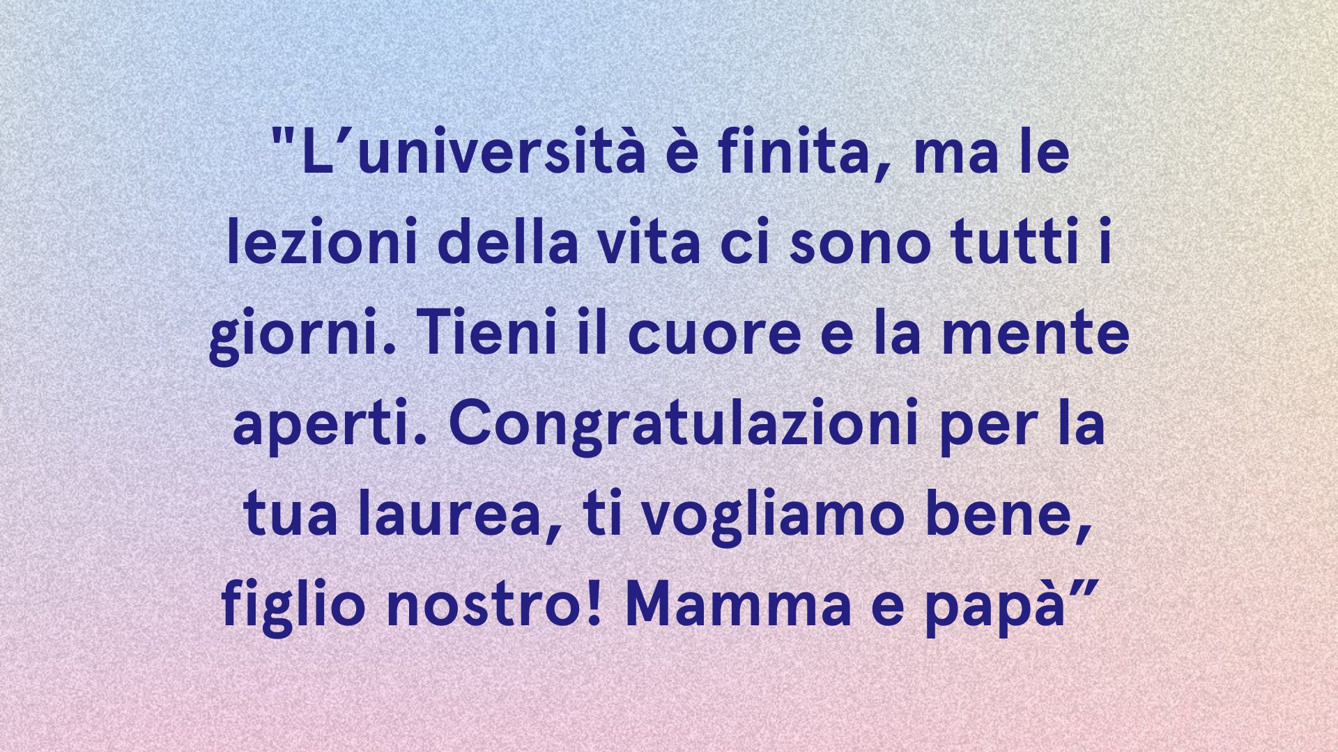 - Abbiamo riso, pianto, studiato e sudato per questa laurea: solo tu sai quanto è stata dura, ma se siamo qui ora, significa che ce l’hai fatta. Sono orgogliosa di te!