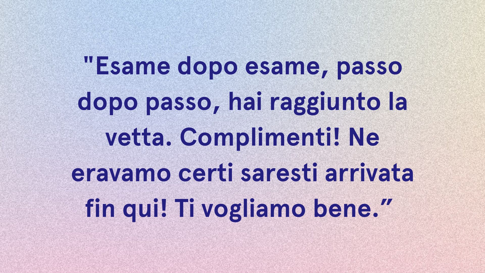 - Quante notti insonni abbiamo passato sui libri, quante lezioni infinite ed esami che sembravano prendere il sopravvento sulle nostre vite. Ma ora siamo qui, e ce l’abbiamo fatta, tu ce l’hai fatta amica mia. Non sai nemmeno quanto io sia orgogliosa di te, ma quello che spero tu sappia è che qualunque sarà la tua strada ora, io sarò al tuo fianco.