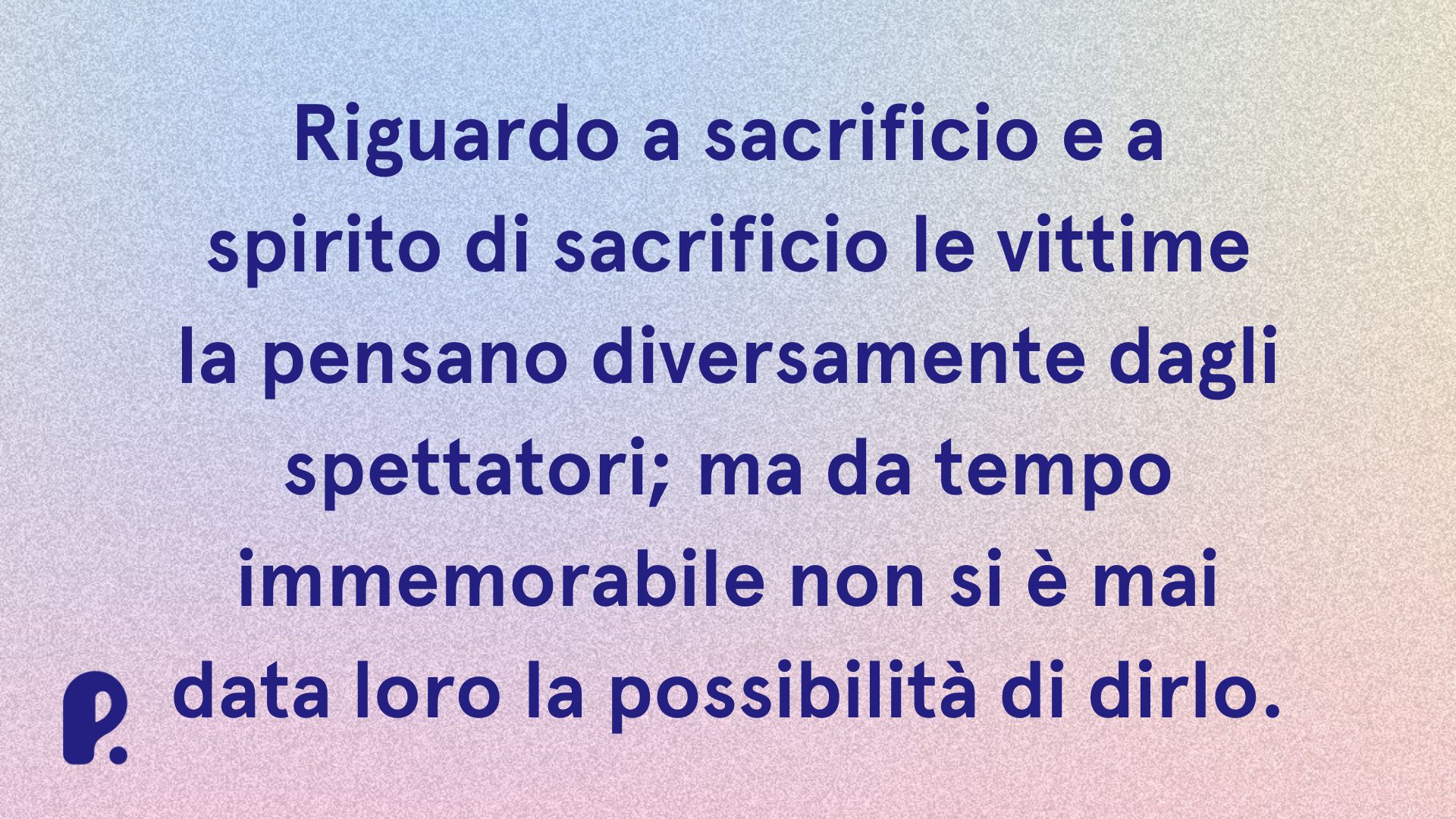- La gente adora i sacrifici del prossimo. Anzi si augura che il prossimo non abbia alcuna esitazione a compierli. Ivy Compton-Burnett