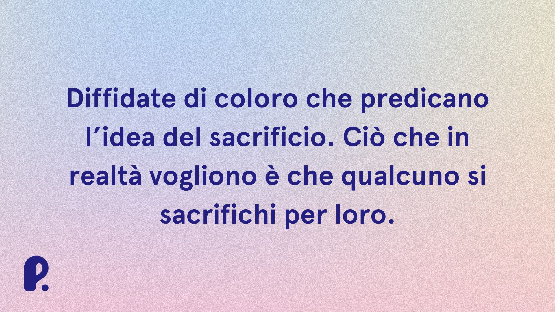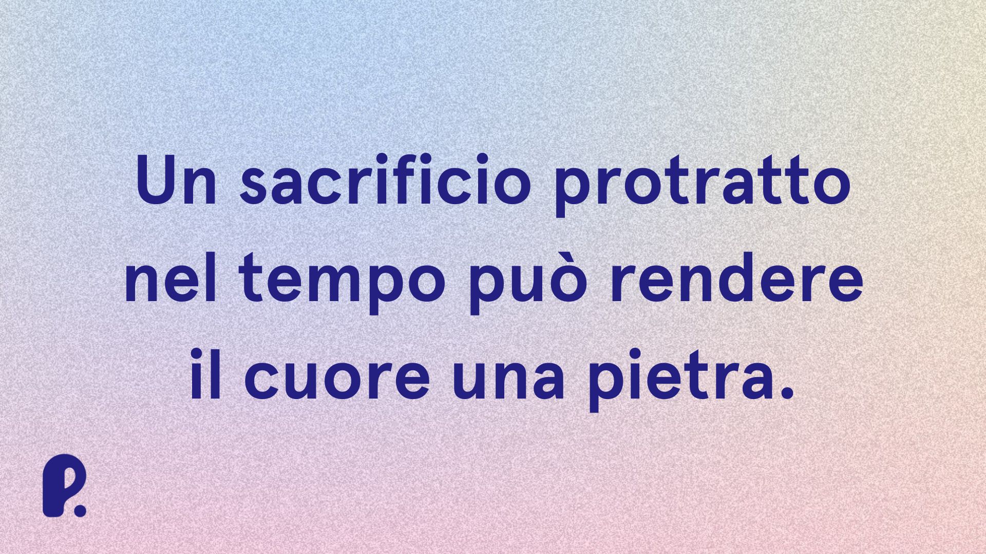 - Se chiediamo un sacrificio a una persona, pretendiamo ci assicuri non ritenerlo tale. Il suo valore consiste invece nel compiere sì un sacrificio, ma volentieri. Alessandro Morandotti