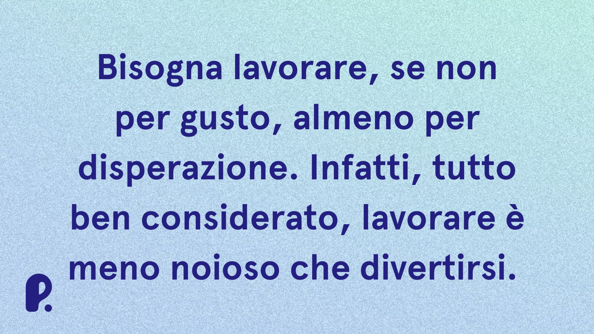 L'attività professionale ricopre un ruolo fondamentale per l'esistenza umana, sia perché fornisce il sostentamento economico per poter sopravvivere, sia perché, nel migliore dei casi, rappresenta l'espressione più riconoscibile delle proprie capacità e dei propri talenti. Ma quali sono le riflessioni più profonde su questo tema? Ecco tante frasi sul lavoro che, a modo loro, hanno come obiettivo quello di stimolare un pensiero, un approfondimento o, semplicemente, strappare una risata.
