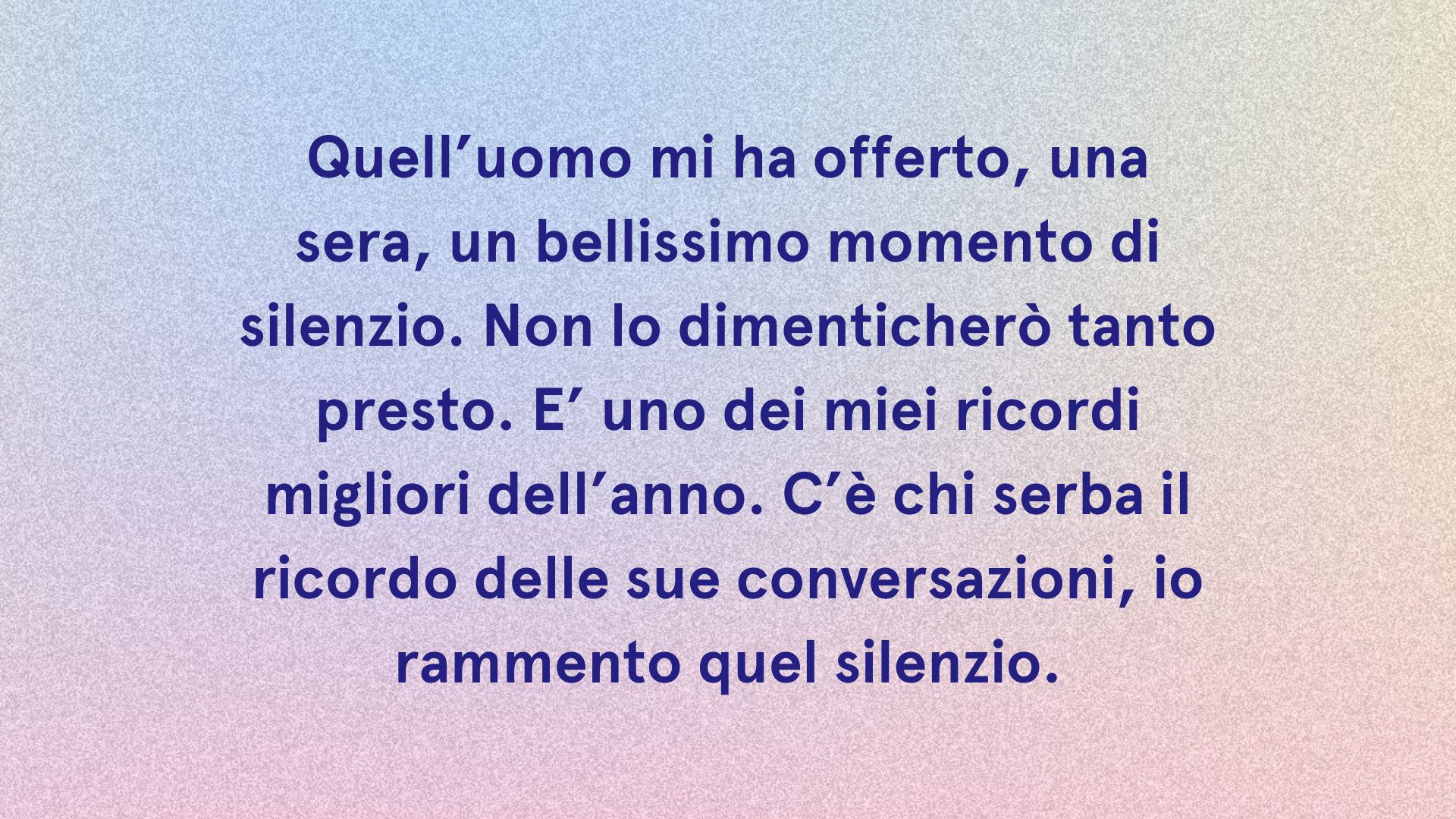 - Si dice che ogni persona è un’isola, e non è vero, ogni persona è un silenzio, questo sì, un silenzio, ciascuna con il proprio silenzio, ciascuna con il silenzio che è. José Saramago
