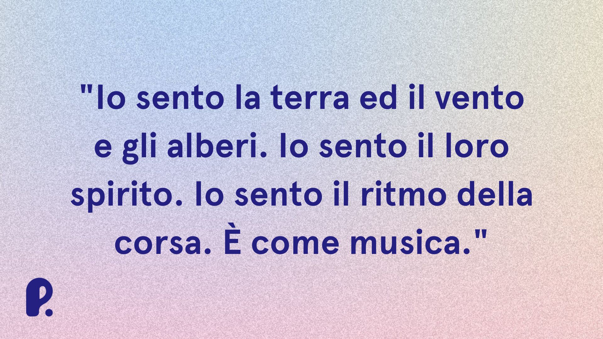 - "Sentire l’odore dell’aria al mattino, il calore del sole, le fibre dei tuoi muscoli, la fatica, la ricompensa.