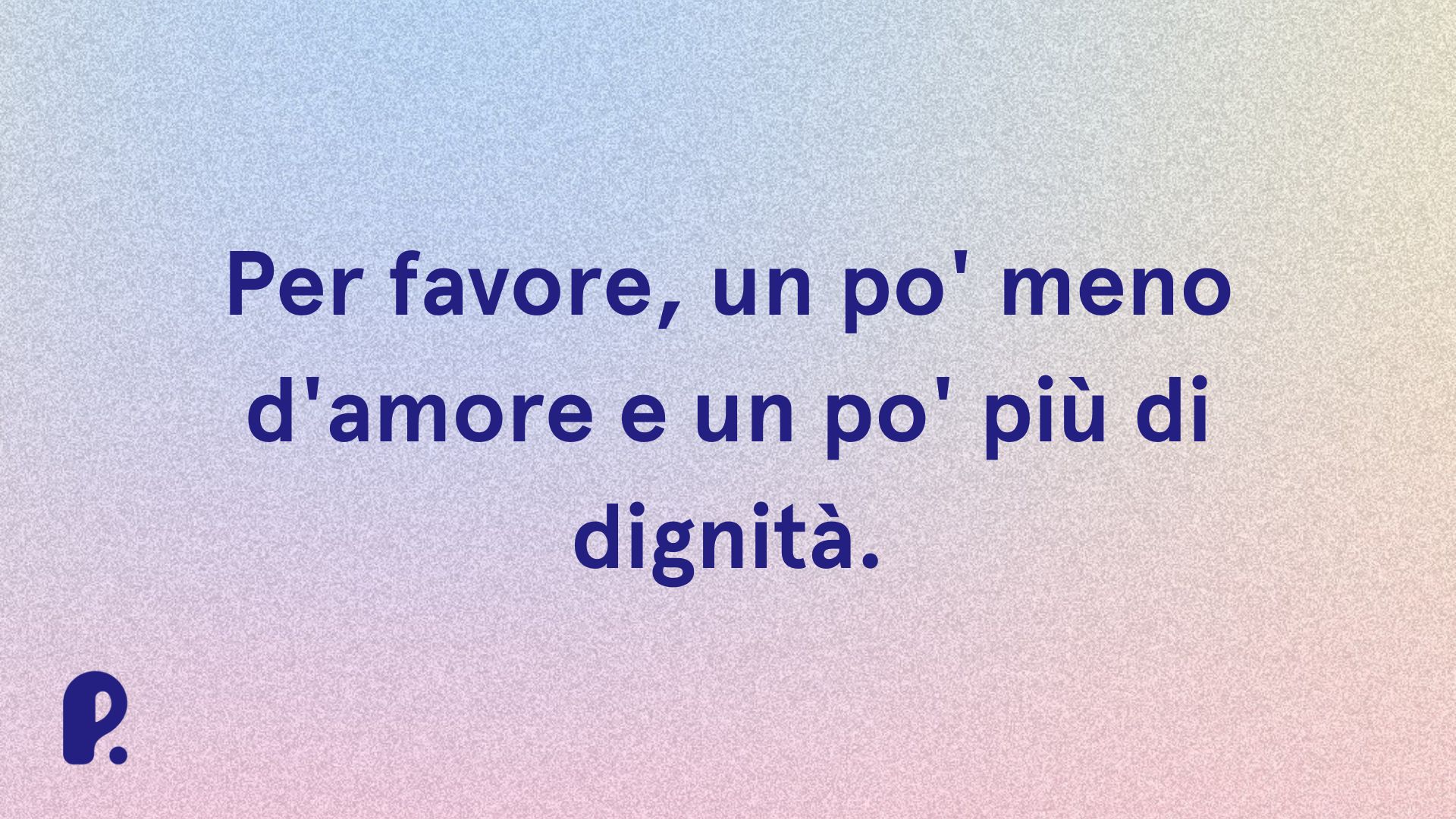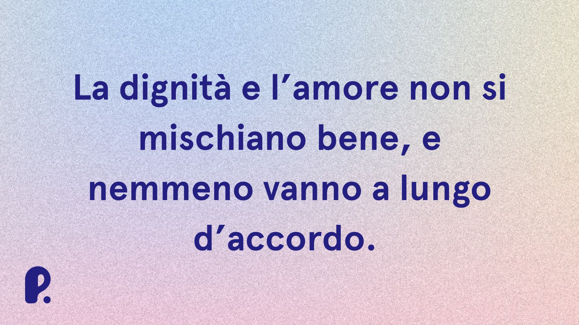 La dignità, ovvero il rispetto verso sé stessi, è una condizione essenziale anche (e soprattutto) nelle storie d'amore.