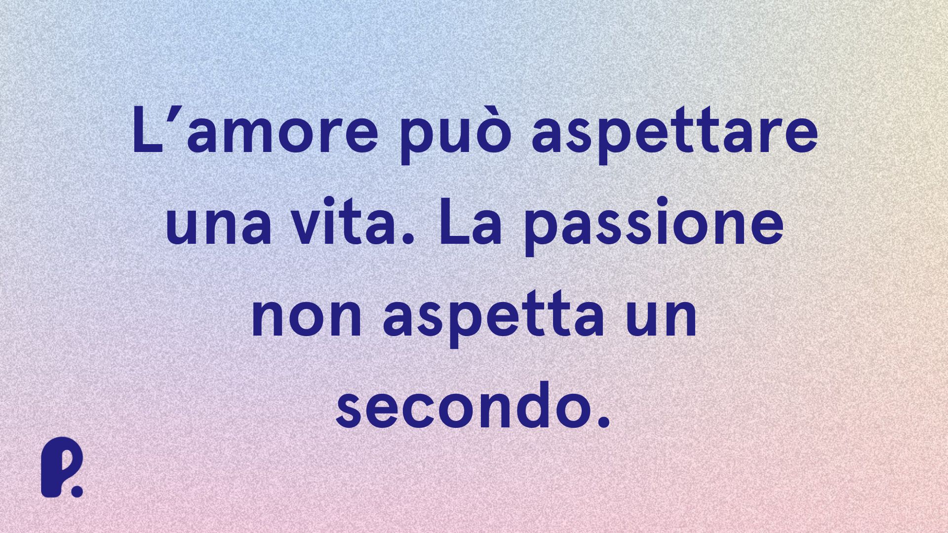 - L’amore può aspettare una vita. La passione non aspetta un secondo.