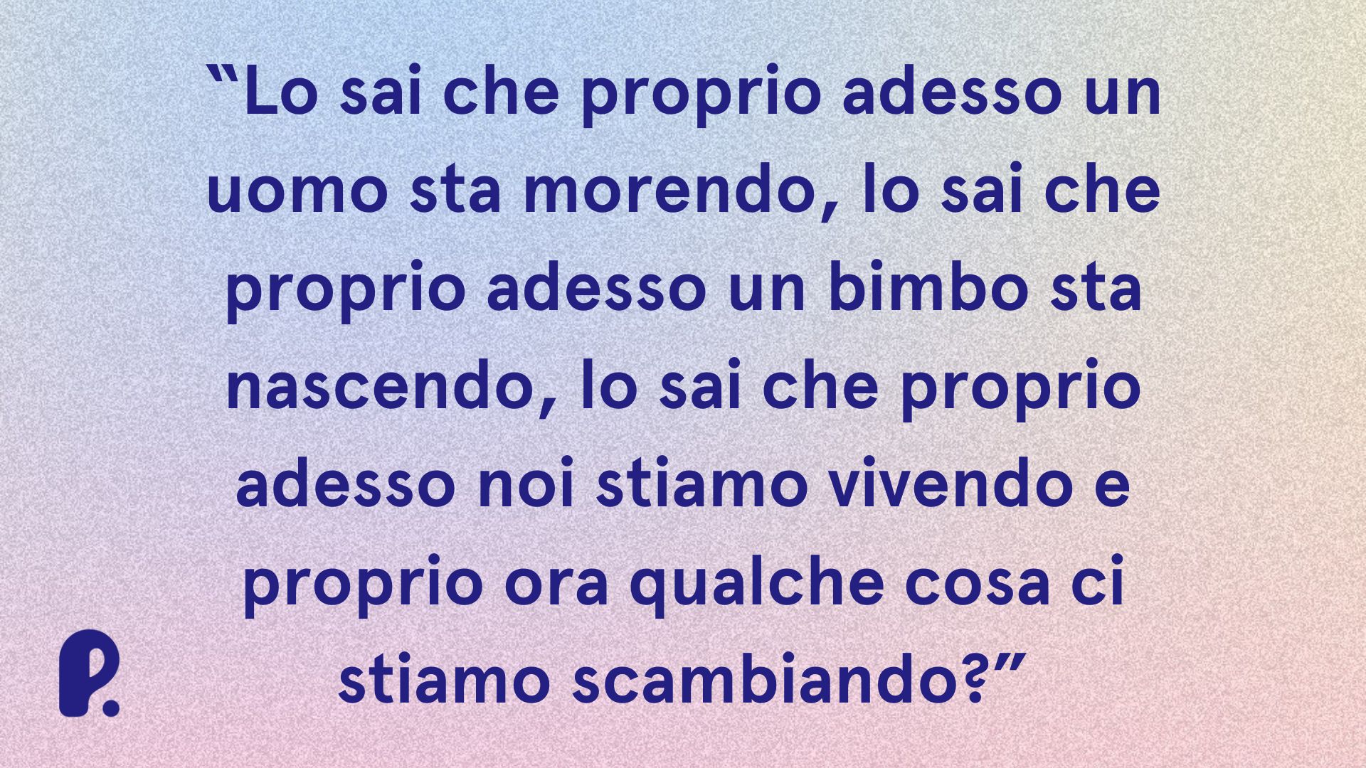 - "Io e te, che attraversiamo il fuoco con un ghiacciolo in mano, che siamo due punti ma visti da lontano."