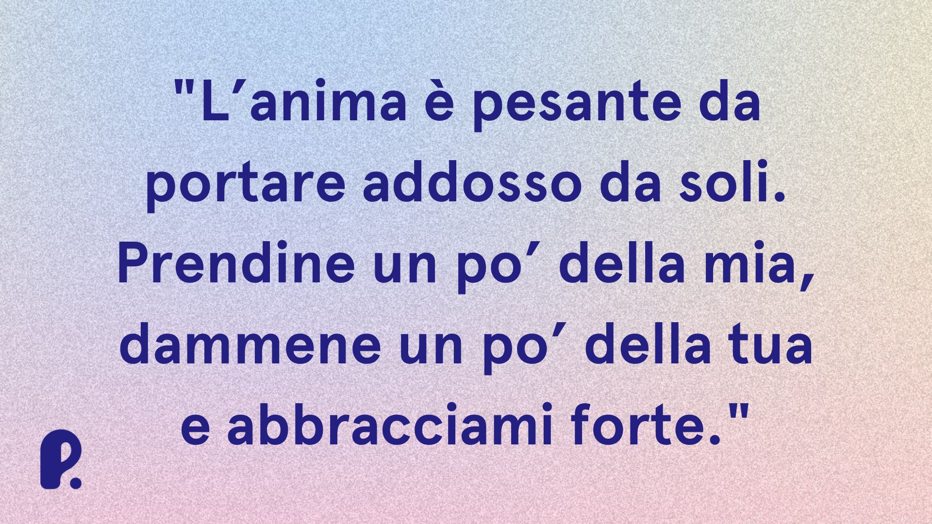 - "Arriva subito. Mi riconosci ho le scarpe piene di passi. La faccia piena di schiaffi. Il cuore pieno di battiti e gli occhi pieni di te."