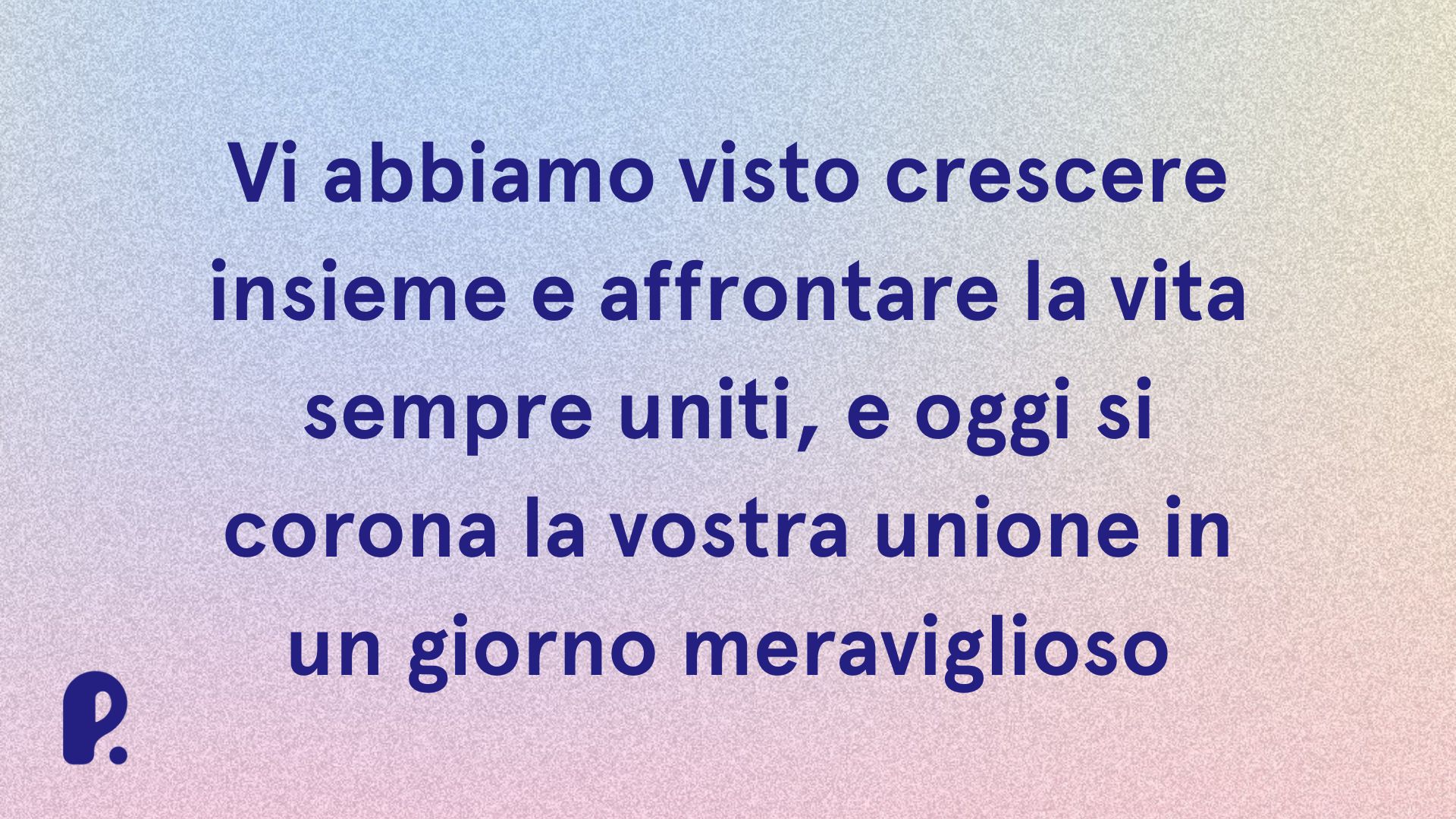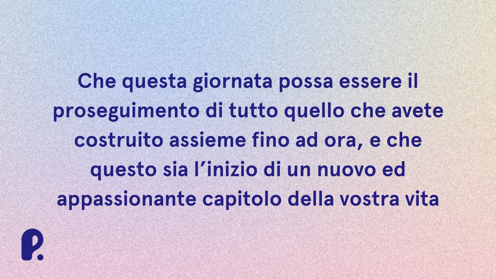 Se tuttavia la coppia ha deciso di suggellare il loro rapporto davanti ad amici e parenti, si tratta di un'occasione davvero unica per fare loro per proprie felicitazioni, magari dedicando una frase ad hoc che descriva il loro amore.