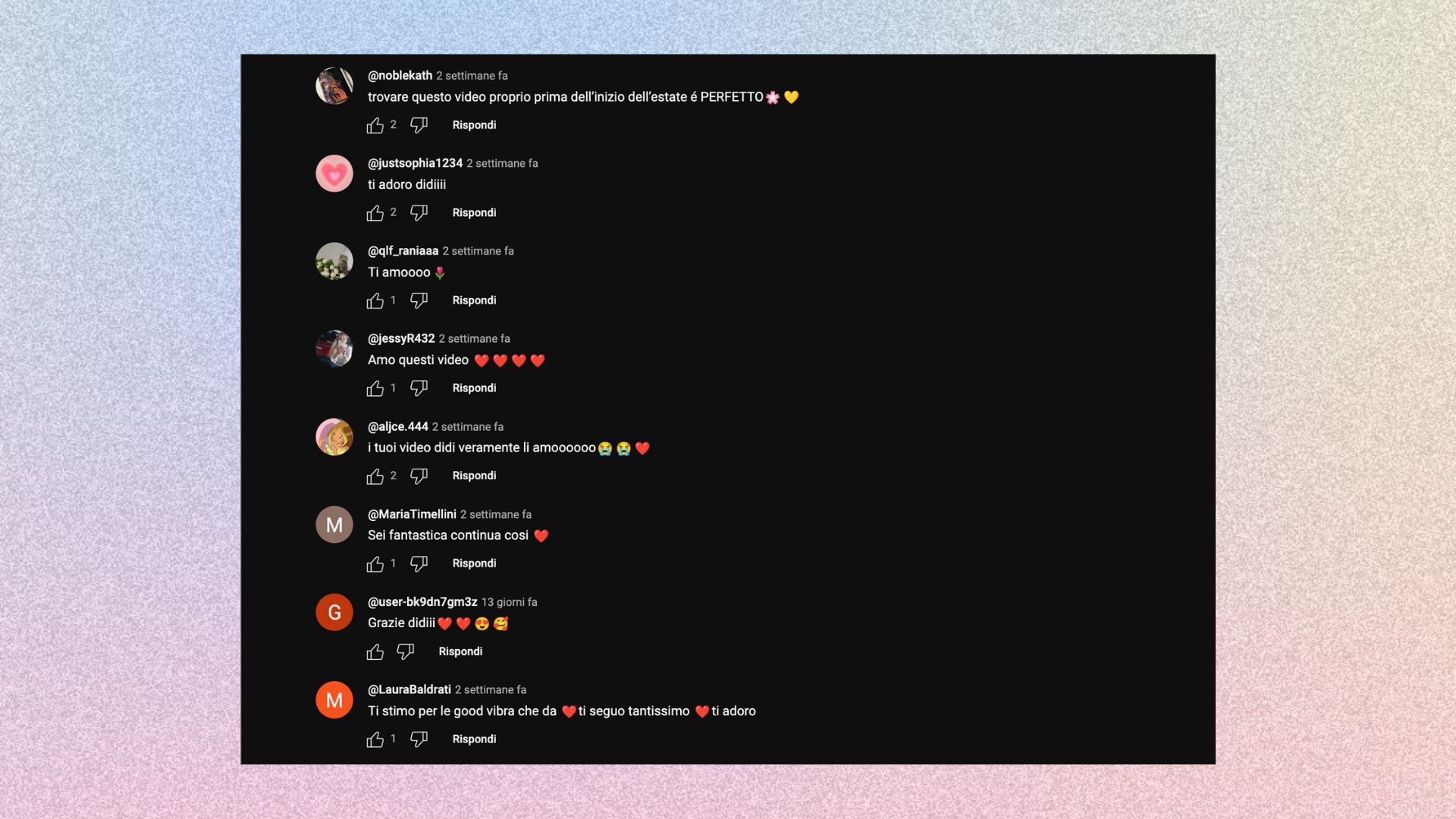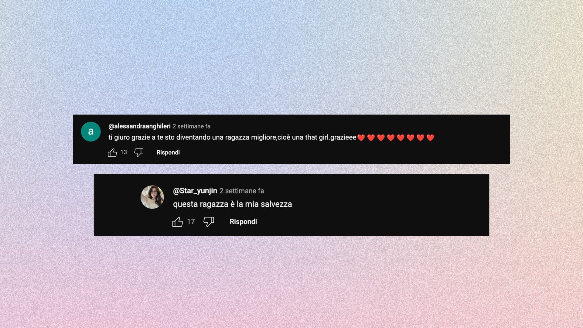 Due commenti sotto un video YouTube sotto un video riguardo il glow up estivo