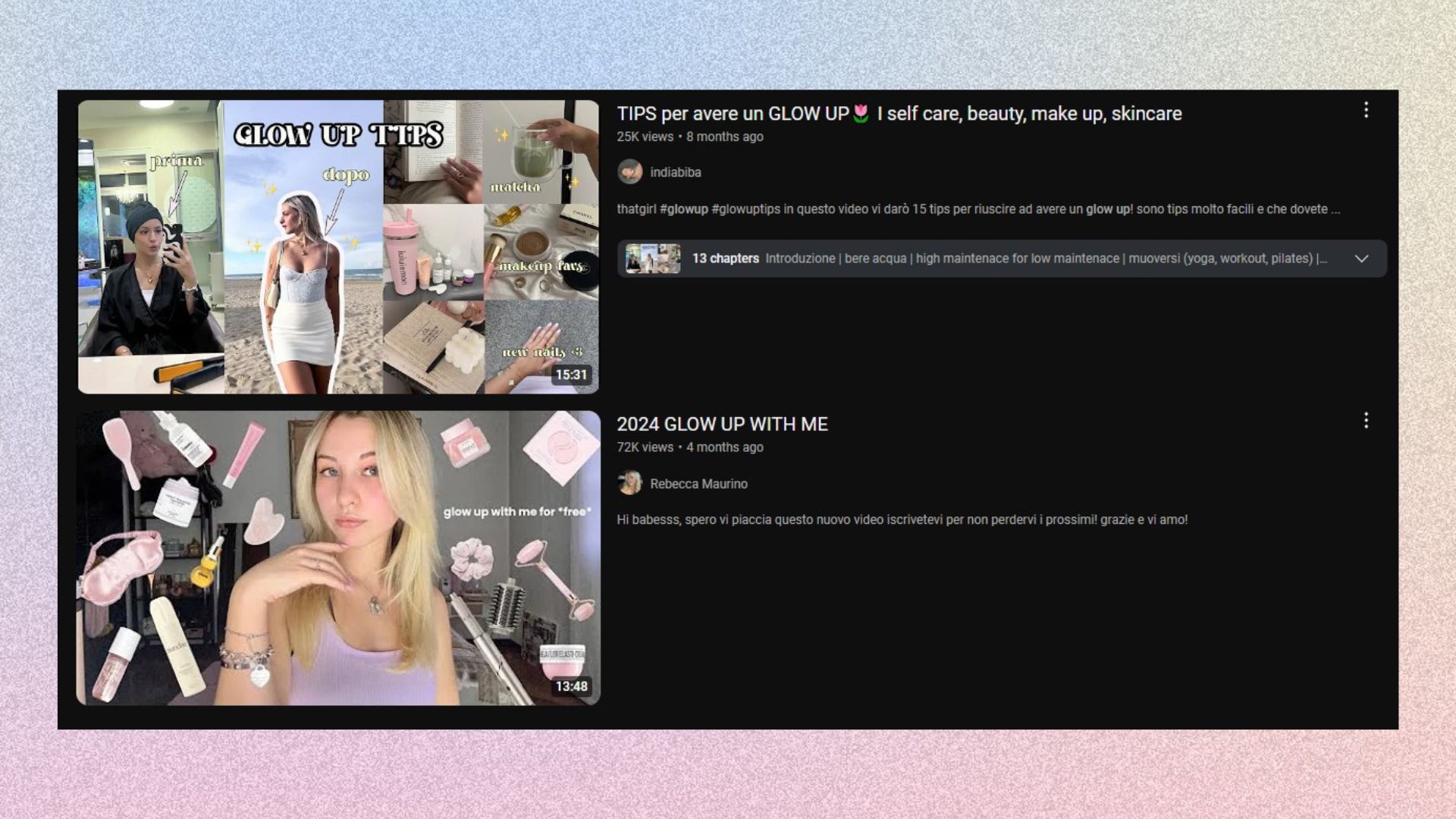 Risultati per "glow up estivo" su YouTube