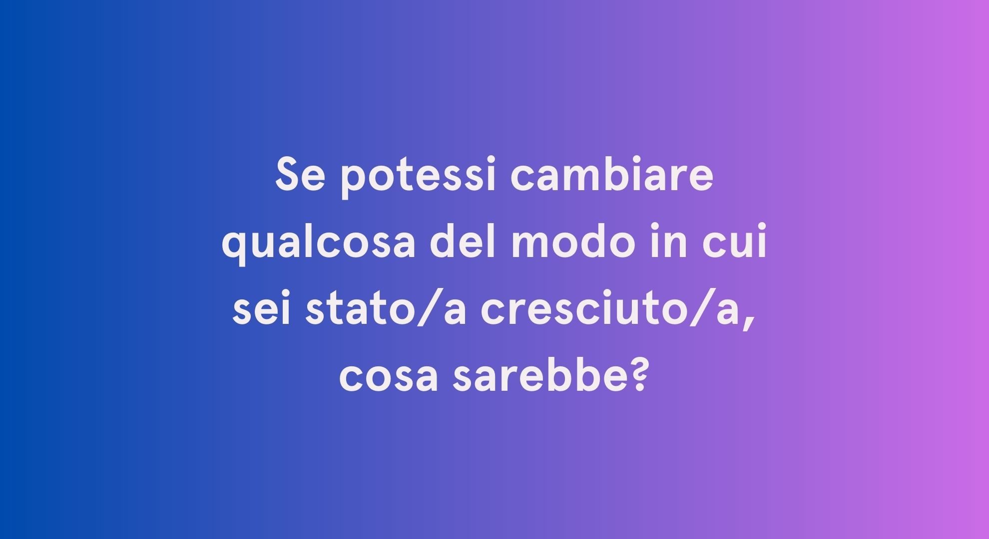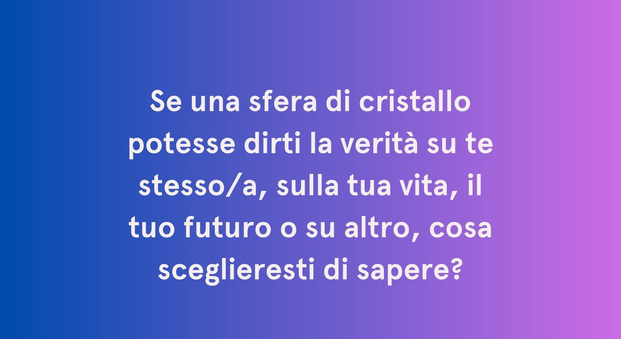 - Quale domanda vorresti che qualcuno ti facesse ma nessuno ti ha mai fatto?