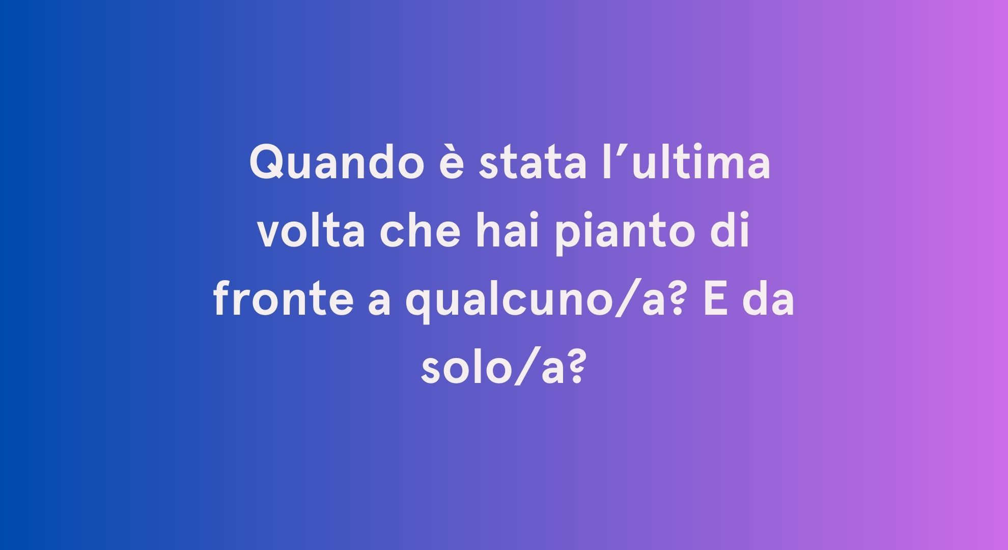 - Quando è stata l’ultima volta che hai pianto? E l’ultima volta che hai riso?