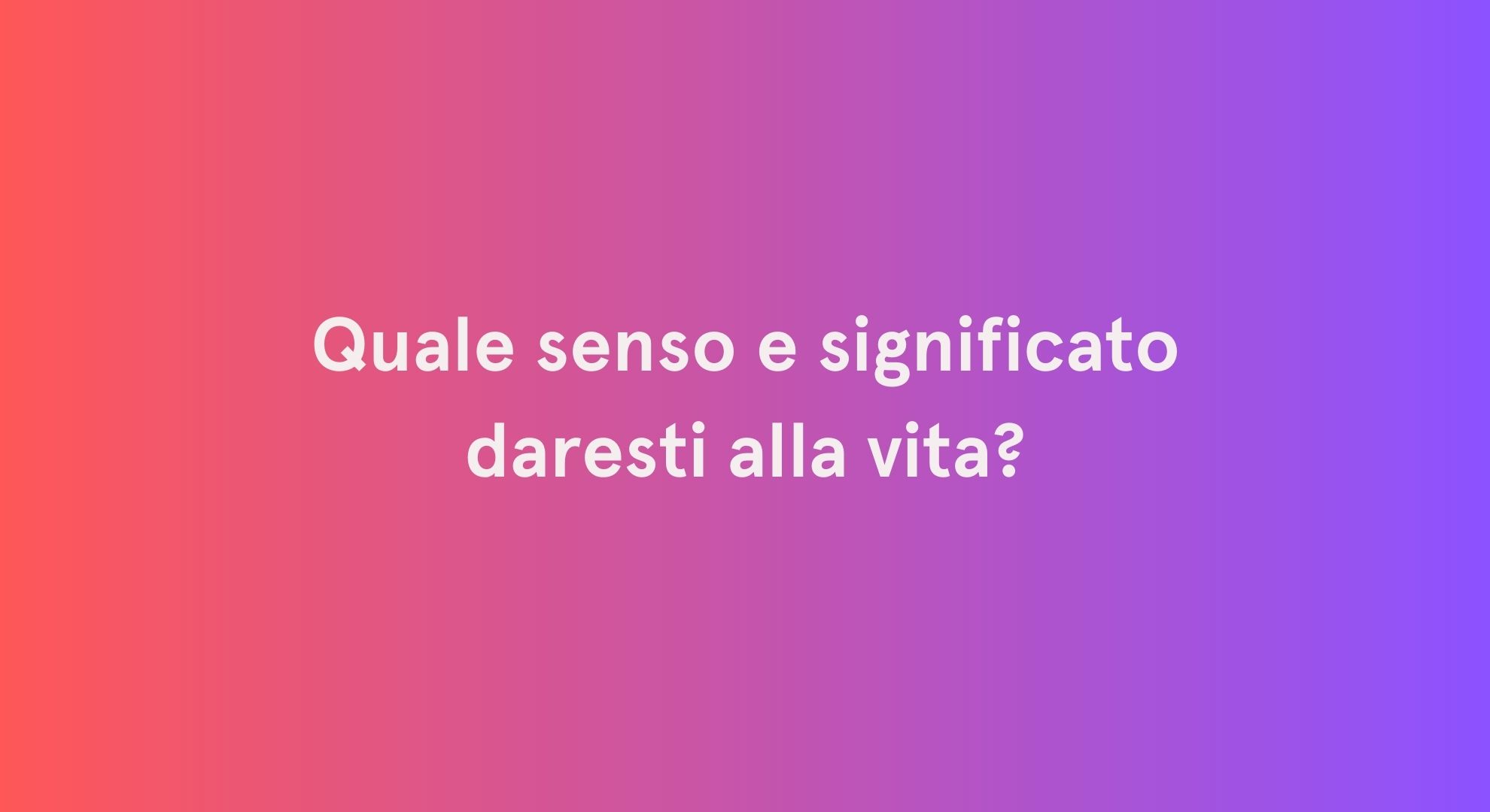 - Quale pensi sia il vero significato della vita?