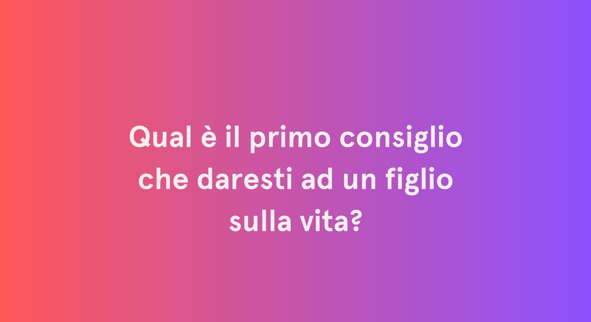 - Qual è il miglior consiglio che puoi dare?