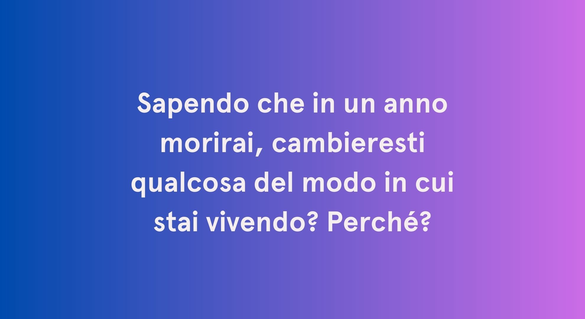 - Se dovessi morire oggi, quale sarebbe il tuo più grande rimpianto?