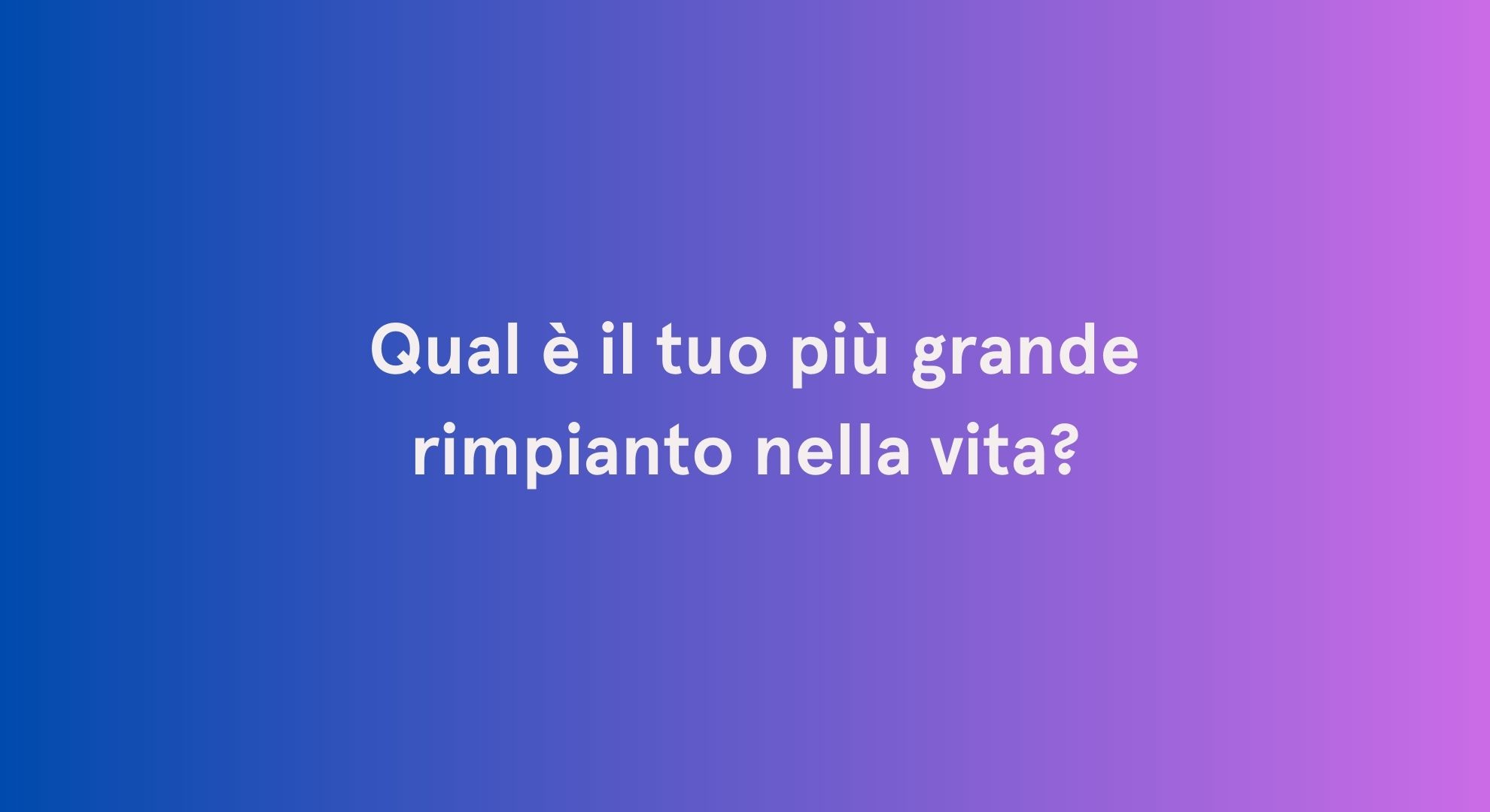 - Qual è il tuo più grande rimpianto?