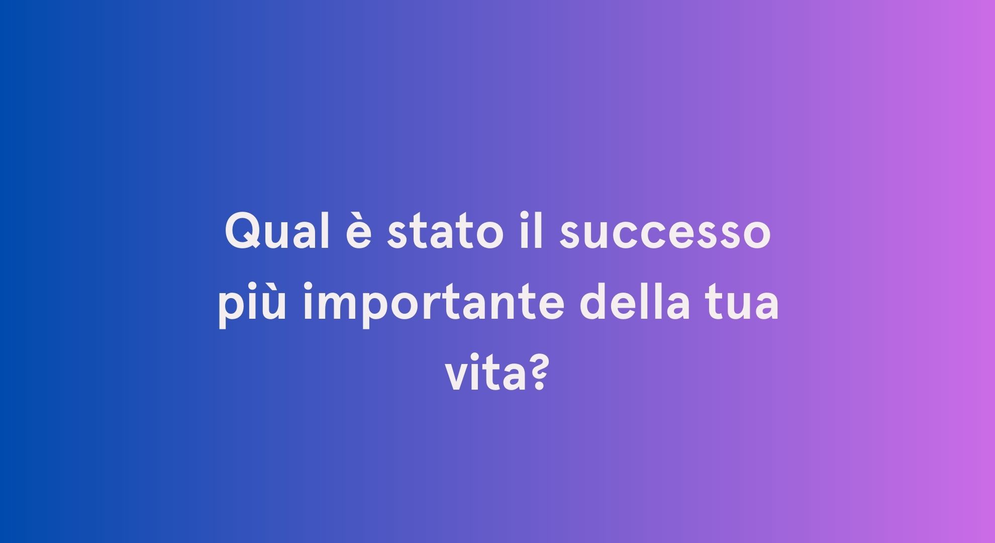 - Qual è il sogno più grande che vuoi realizzare nella tua vita?
