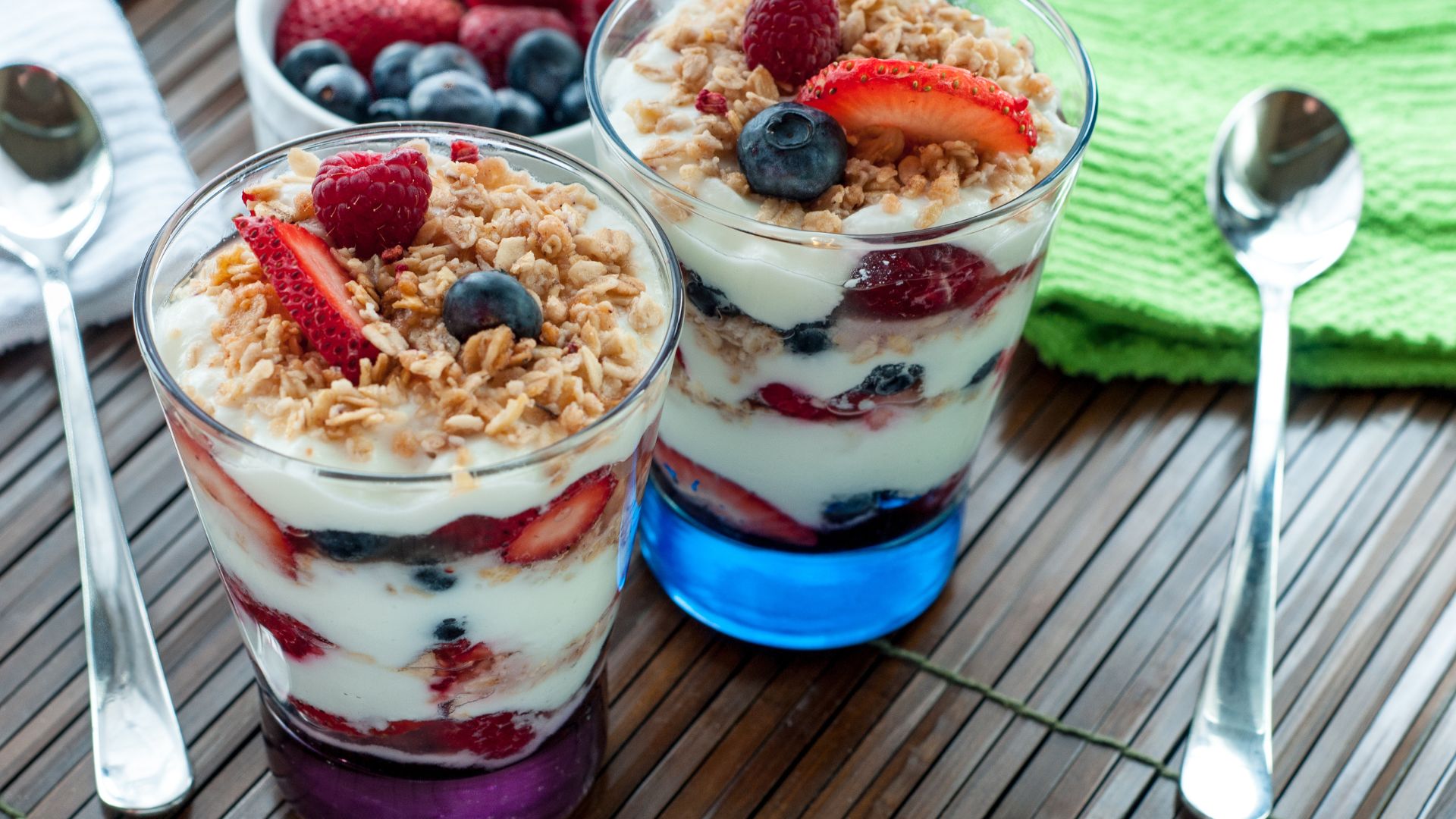 - Yogurt greco con frutta e cereali integrali: unire yogurt greco 0% di grassi con frutta fresca a pezzetti e un cucchiaio di fiocchi d'avena o muesli senza zuccheri aggiunti.