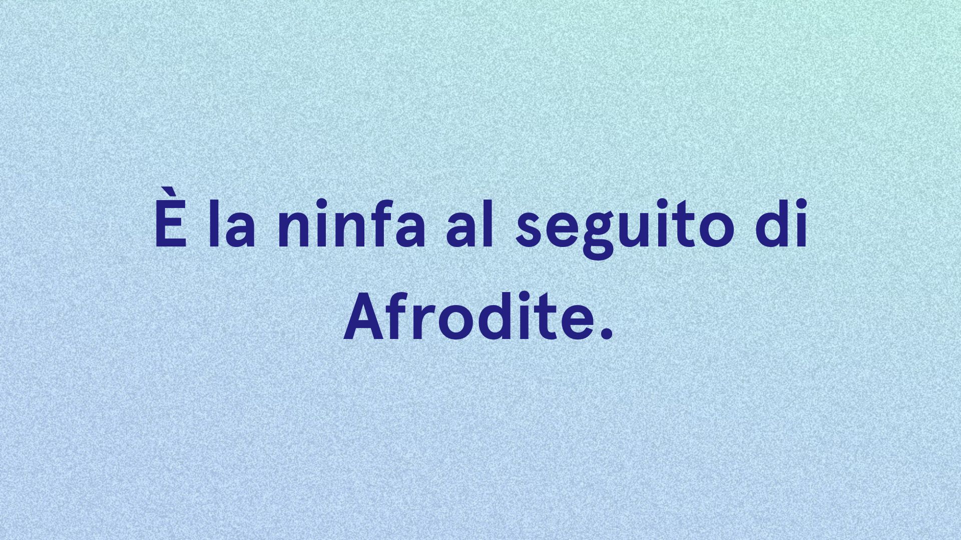 Afrodite. È la dea dell’amore e della bellezza, che si credeva fosse nata dalla spuma del mare. Afrodite era sposata con il dio Efeso.