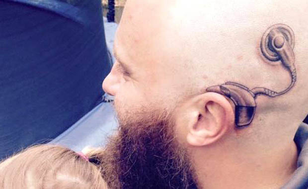 Alistair Campbell, di Taupo, in Nuova Zelanda, si è rasato la testa e ha fatto il tatuaggio per mostrare il suo sostegno alla figlia Charlotte, 6 anni, che ha ricevuto il suo primo impianto all’età di 4. Charlotte ha recentemente avuto il suo secondo impianto.