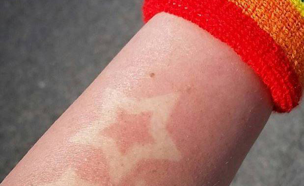 La “Sunburnart” consiste nel far letteralmente scottare il proprio corpo in modo da creare dei disegni su di esso con l’aiuto di un modello che copre alcune zone e ne lascia scoperte altre.