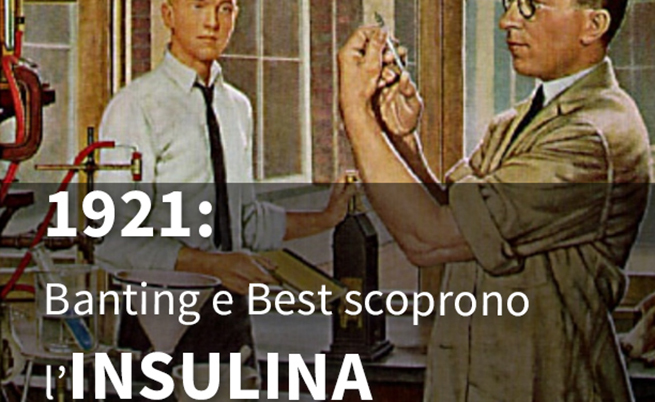 1921: Frederick Banting e Charles Best scoprono l’insulina 1921: Frederick Banting e Charles Best ottengono l’insulina, una scoperta che cambia radicalmente la vita per milioni di diabetici. Ma come si arriva a questa straordinaria scoperta? Nel 1869, Paul Langerhans, studente di medicina di Berlino, impegnato nello studio della struttura del pancreas al microscopio, individua degli